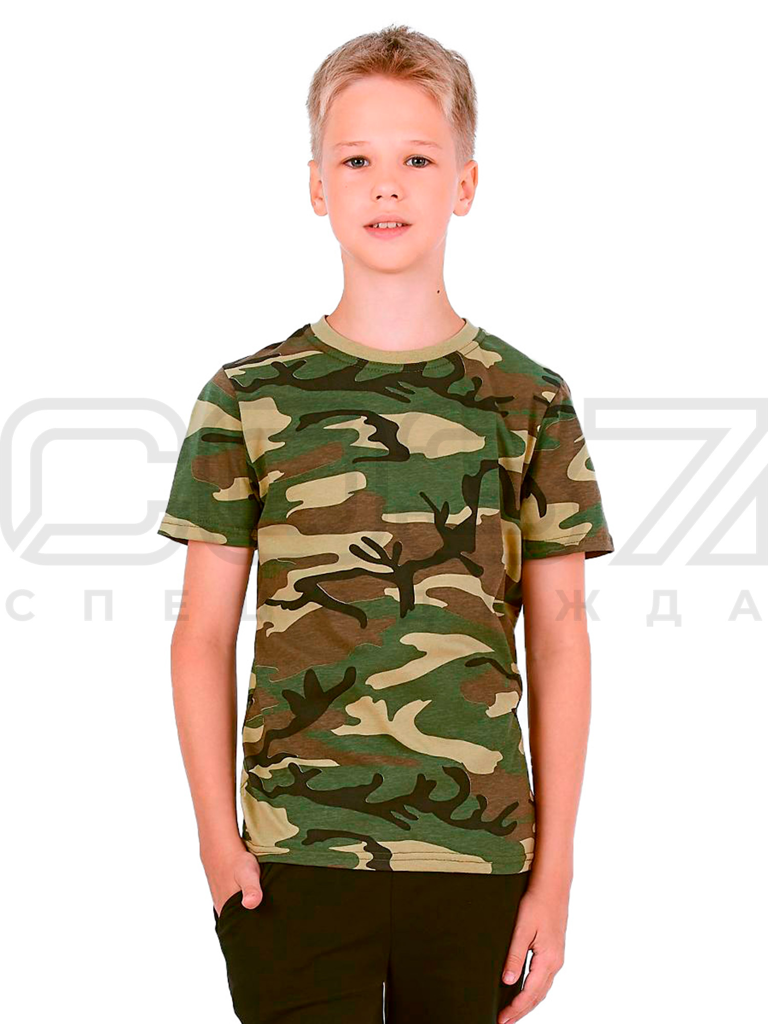 Футболка трикотажная цв.камуфляж/зелёный тк.кулирка в Липецке