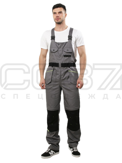 Полукомбинезон рабочий "Экстра" цв.серый/чёрный/лимон тк.смесовая в Липецке