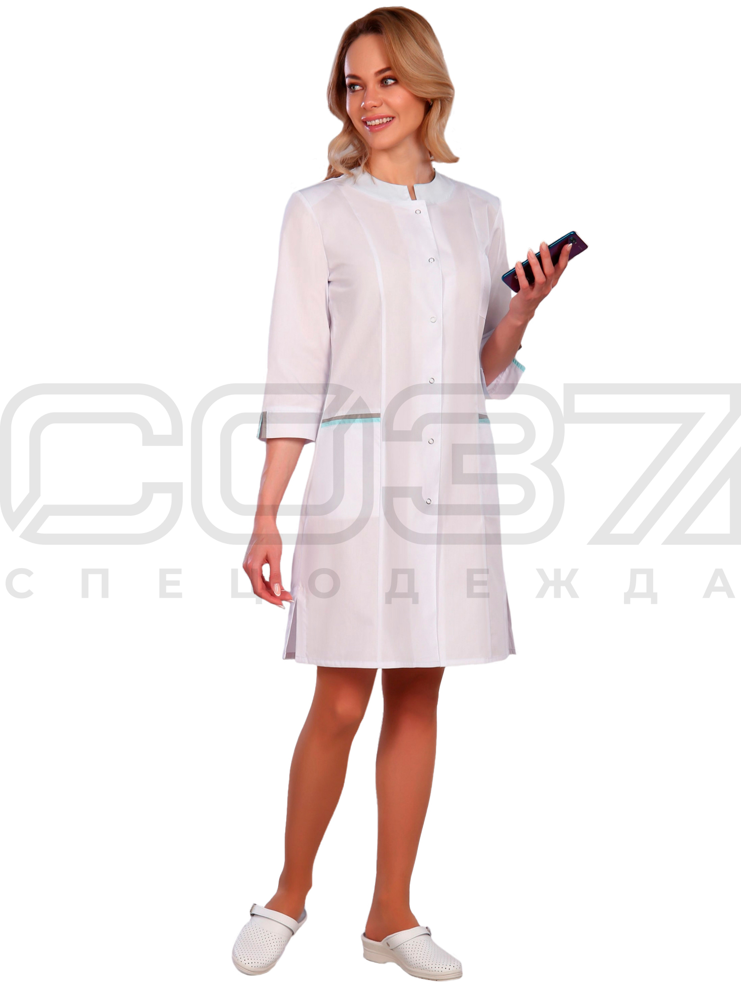 Халат медицинский СБ129 цв.белый/серый/св.бирюзовый тк.тиси в Липецке