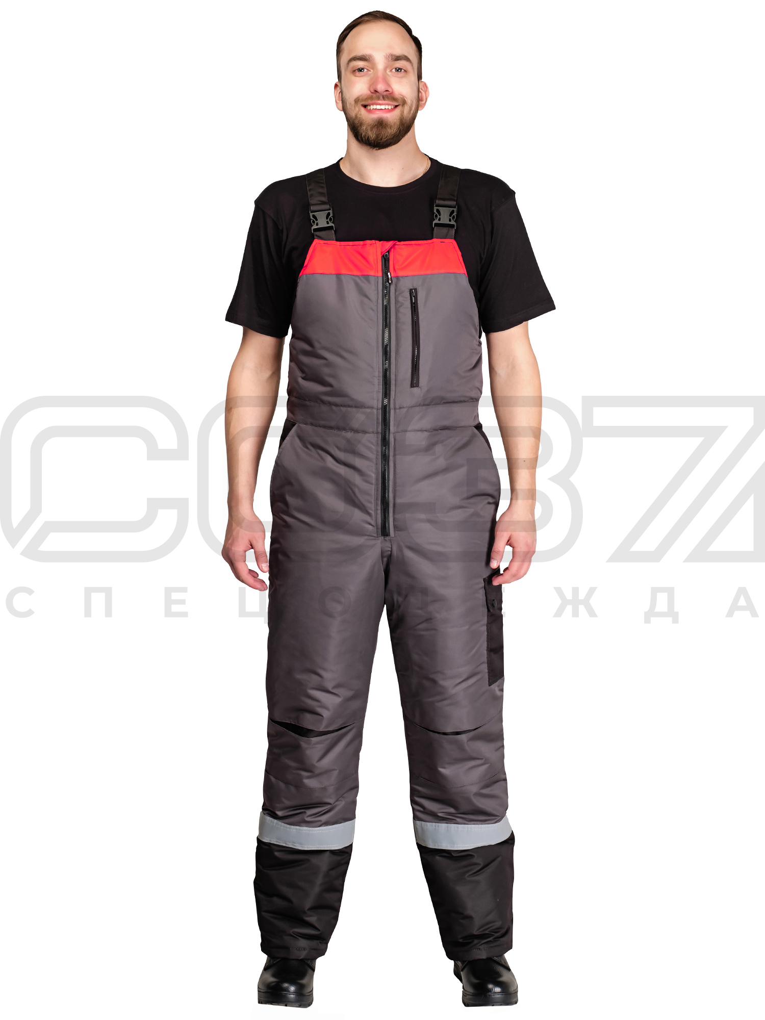 Полукомбинезон рабочий зимний "Азимут" с СОП цв.серый/красн/черн тк.таслан в Липецке