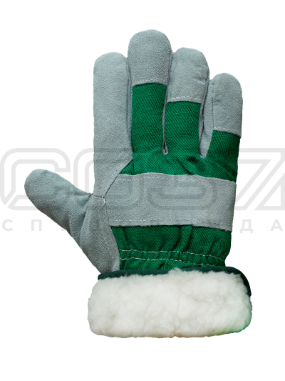 Перчатки спилковые комбинированные зелёные утеплённые (иск.мех) Люкс в Липецке